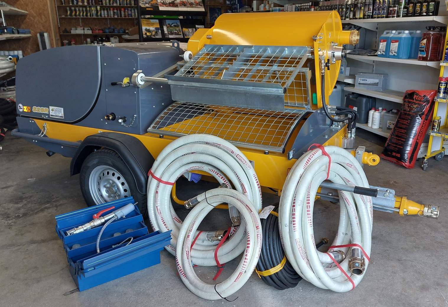 - équipement projection avec 30m de tuyaux en plein passage pour le mortier, lance, manomètre, balles de nettoyage, sangle.